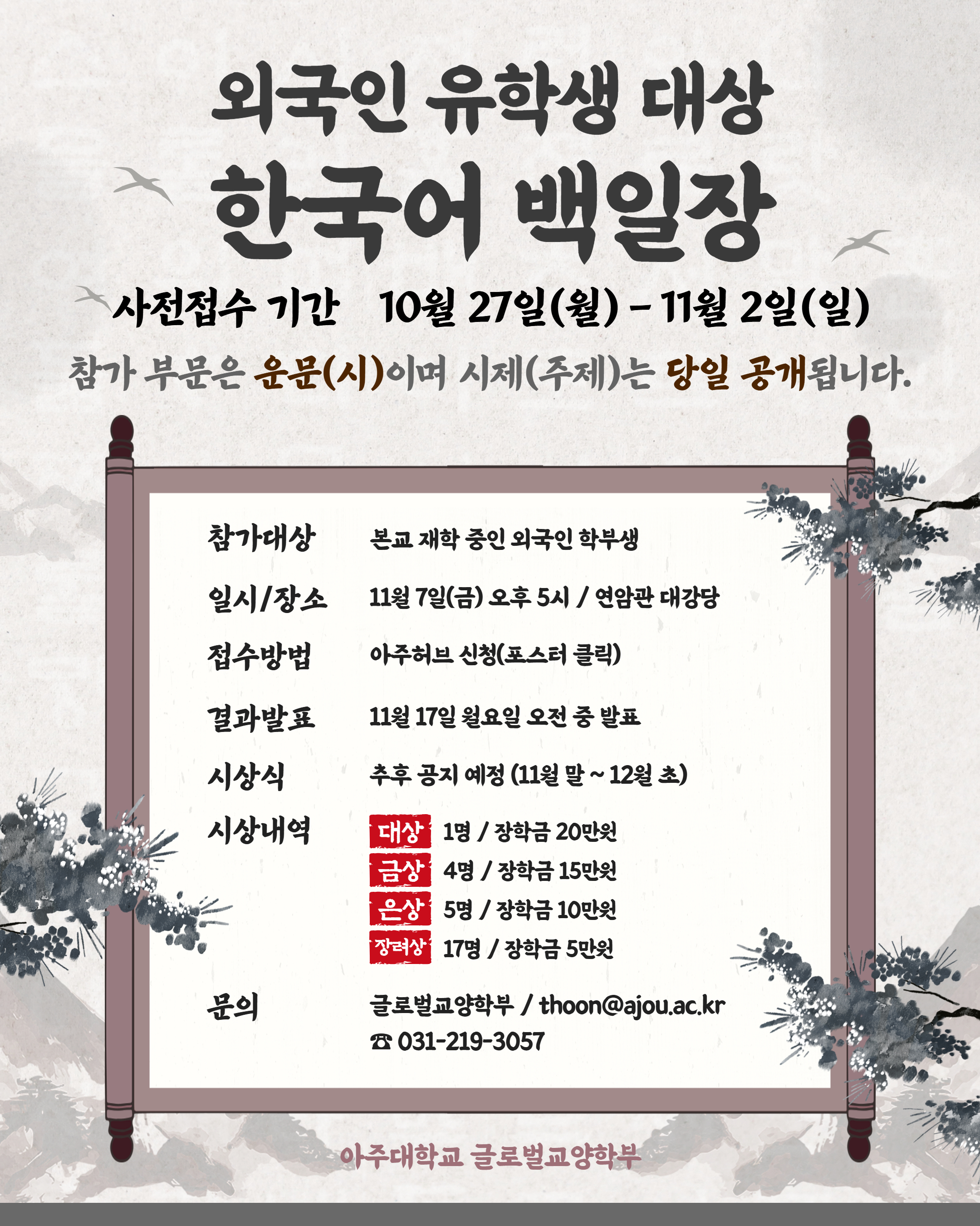 [비교과] [글로벌교양학부] 2025학년도 외국인 유학생 한국어 백일장 개최