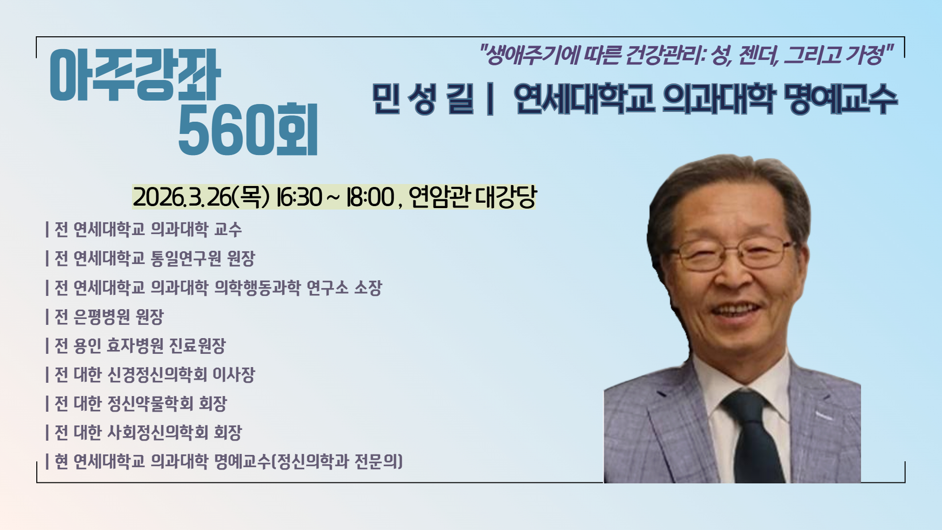 초청 연사: 민성길 (연세대학교 의과대학 명예교수)